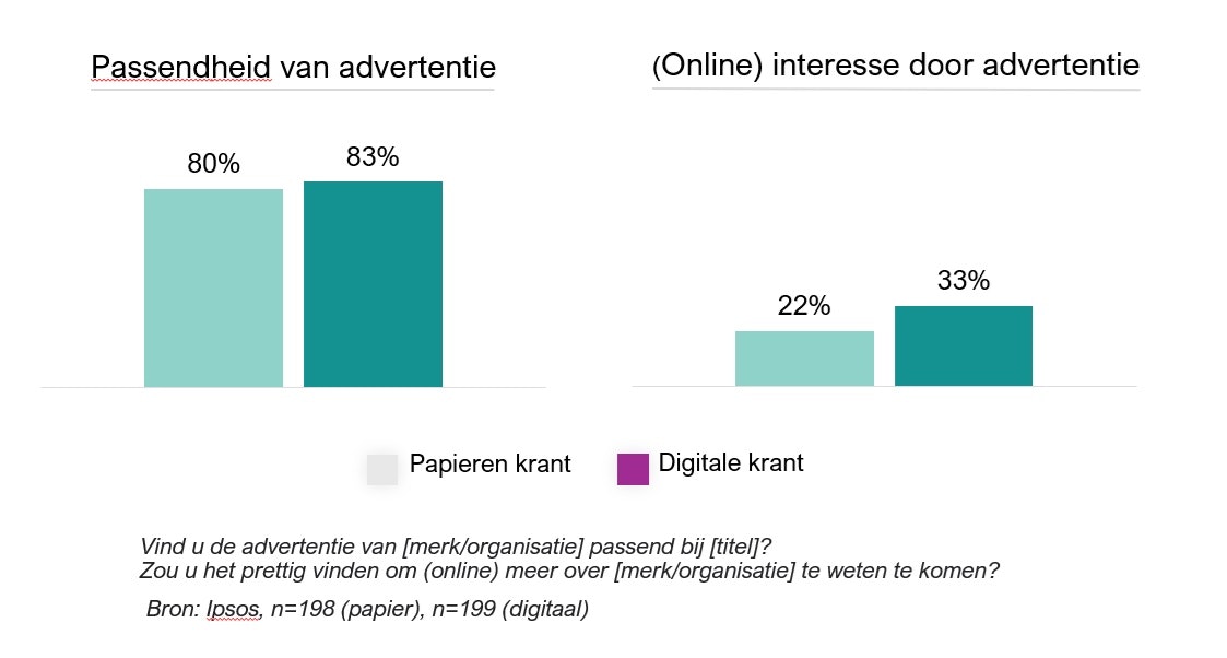Veel digitale lezers hebben interesse om (online) meer naar aanleiding van een advertentie te weten te komen. Ongeveer een derde zou meer te weten willen komen over de vertoonde advertenties. Dat is meer dan bij de gedrukte krant.